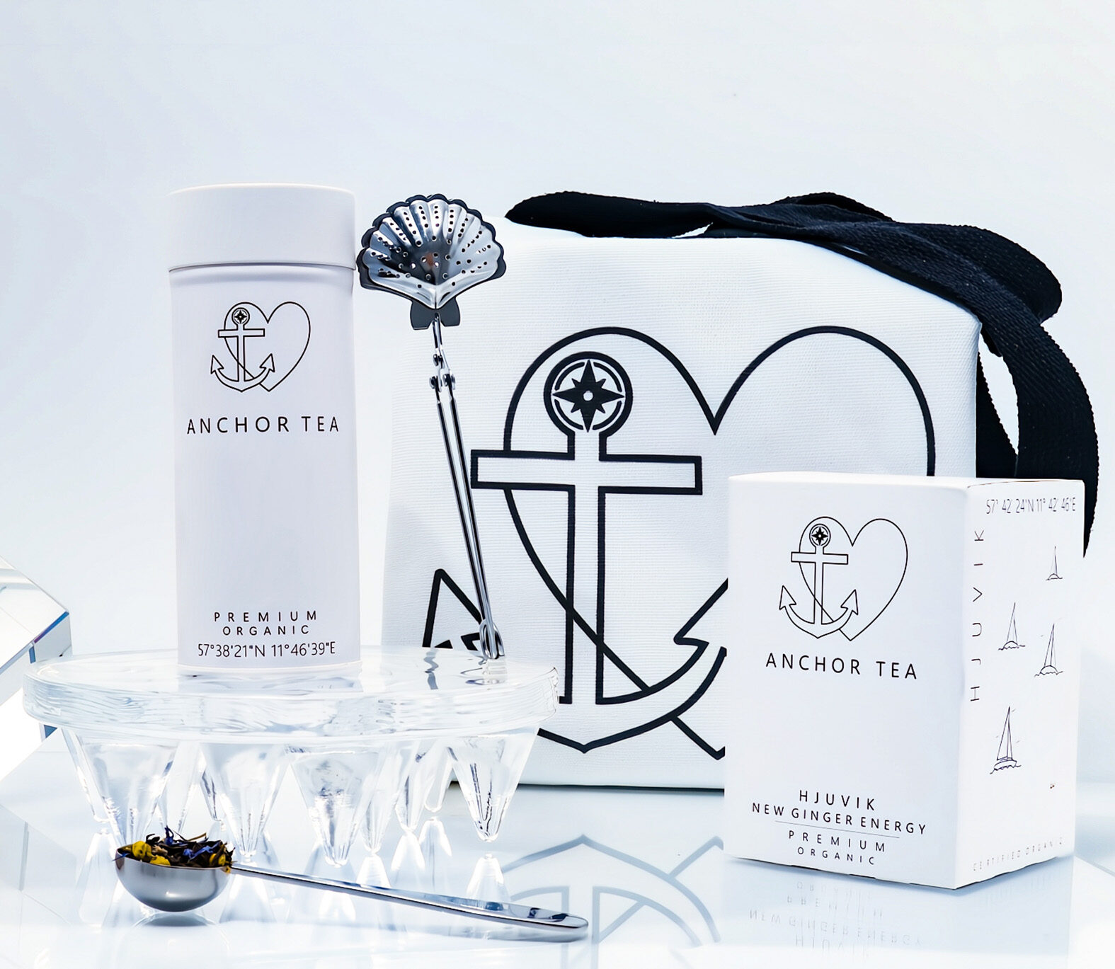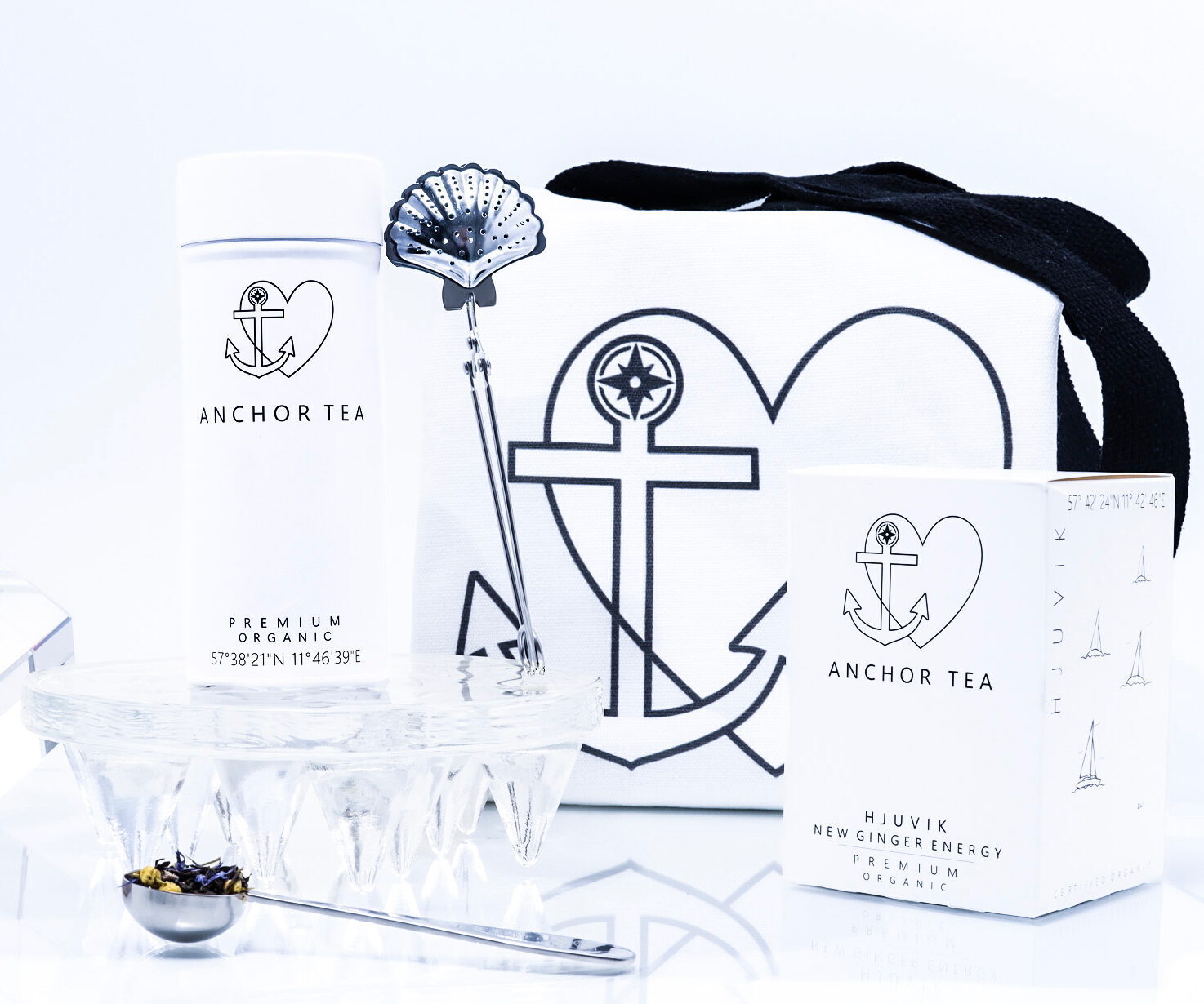 Med eleganta Anchor Tea Can Classic behåller man teets smaker och kvaliten och den stilrena Anchor Tea Spoon gör att doseringen blir enkel och exakt. Omåttligt populära tesilen Anchor Tea Snäckan är också med och skapar den perfekta tekoppen. Setet innehåller även vårt lyxiga Anchor Luxe pås-tea som är delikat och aromatiskt och den medföljande Anchor Tote Bag är både snygg och praktisk.